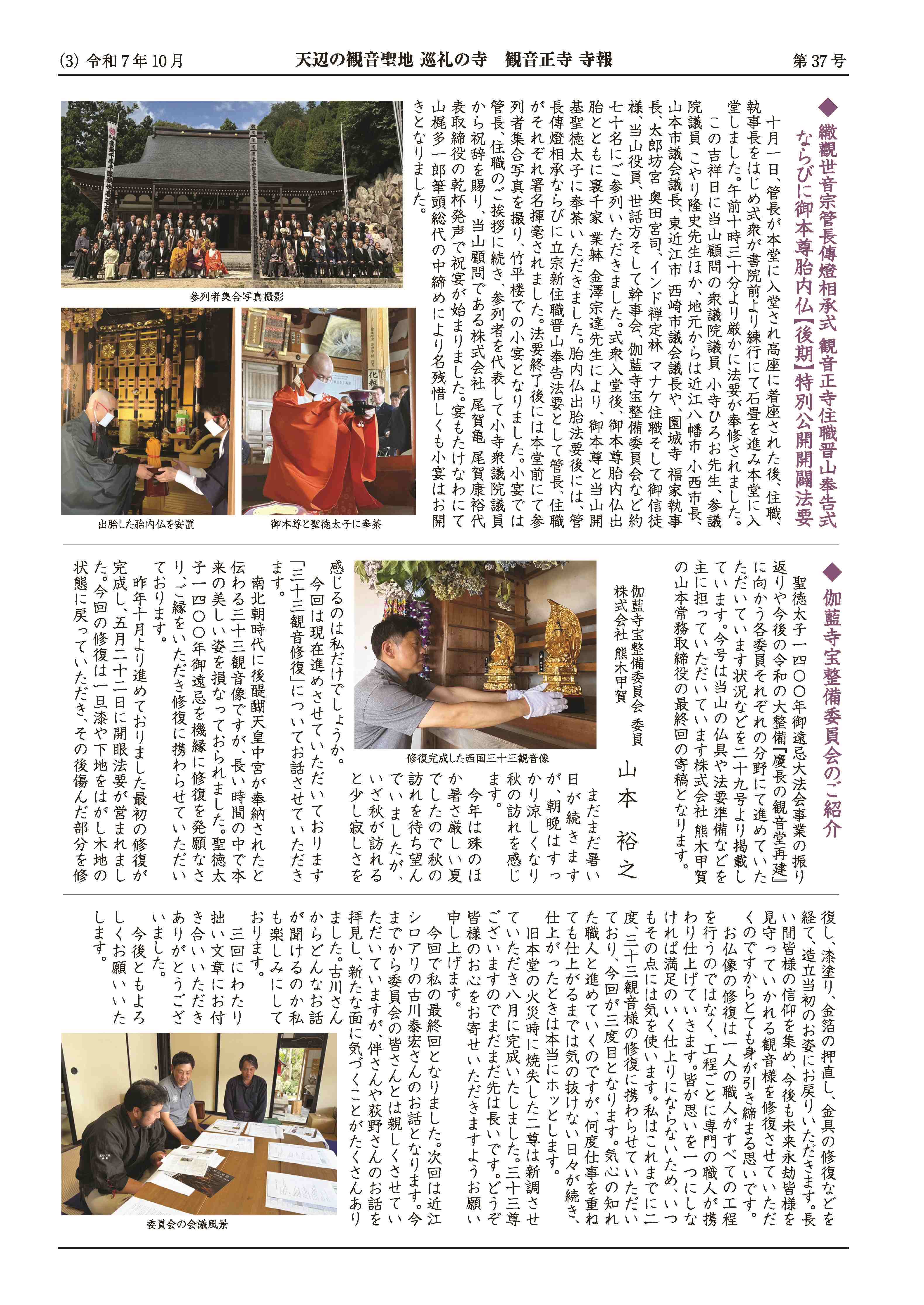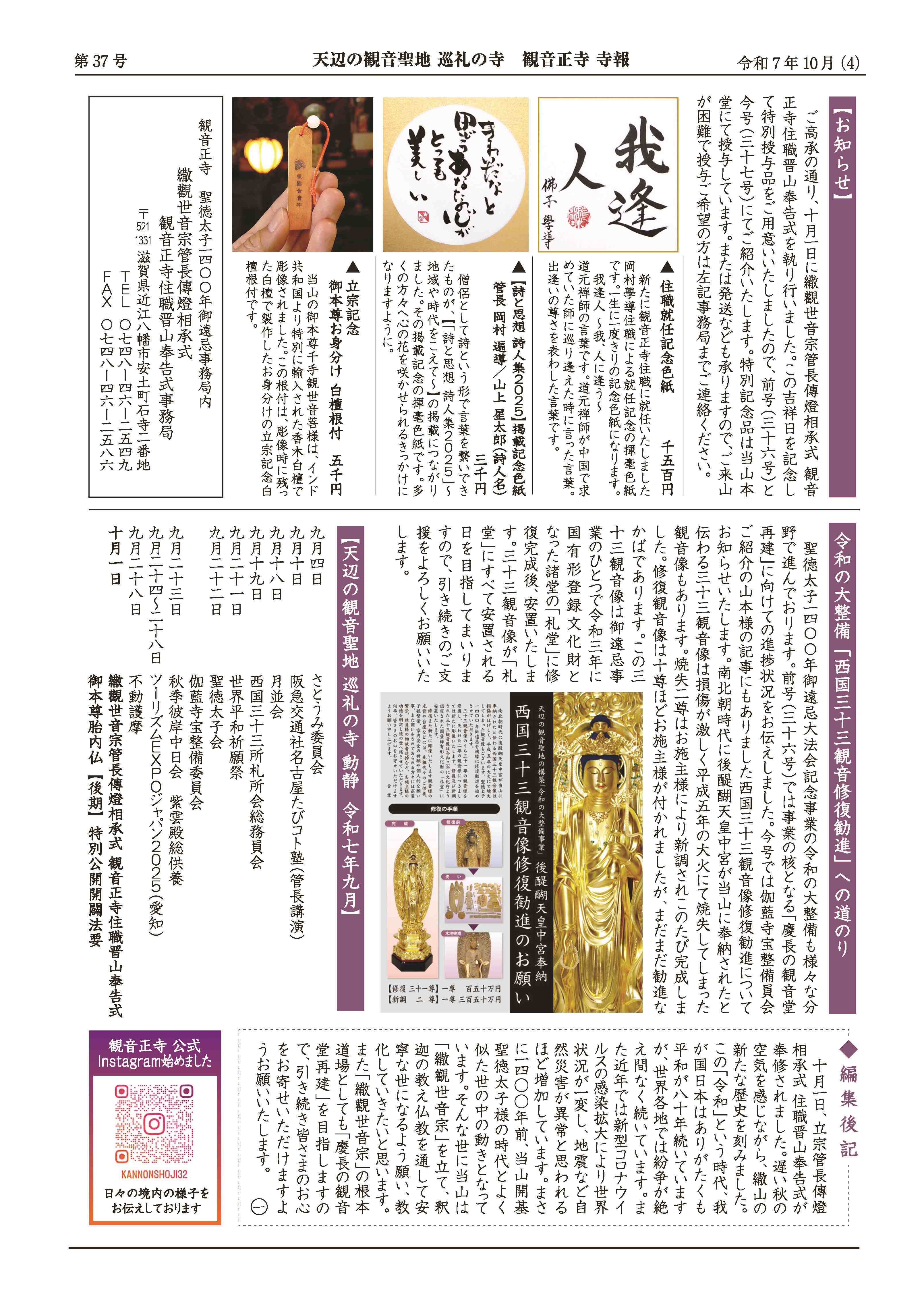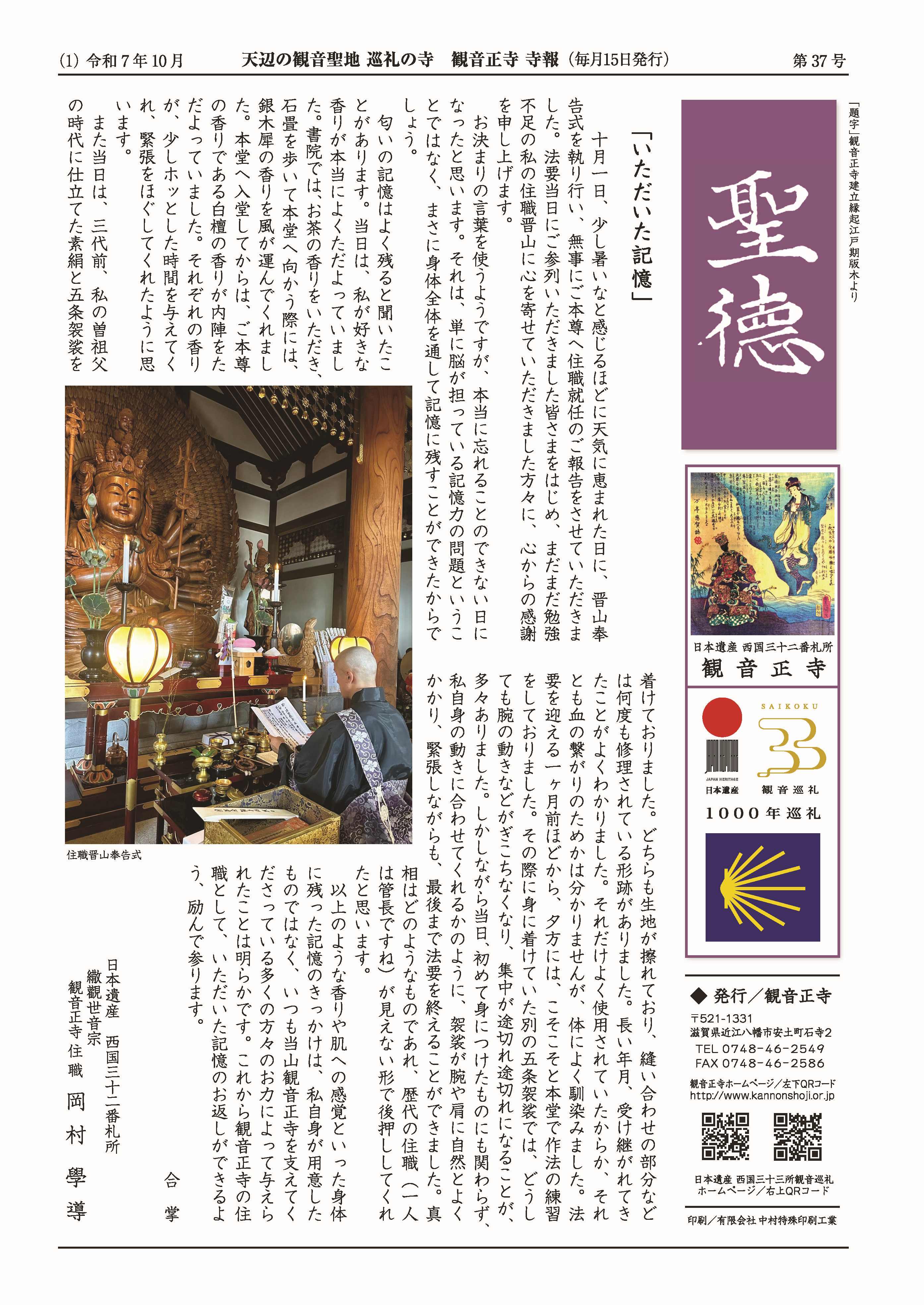 【寺報】聖徳37号(10月発行)の掲載